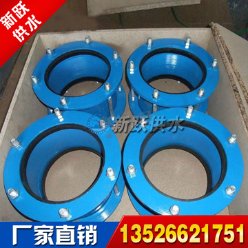 壓蓋式松套伸縮接頭兩端采用承插連接,安裝,拆卸簡便,壓蓋松套伸縮接頭適合連接輸送水,油,氣及顆粒粉狀物的鋼管,鑄鐵管,球墨鑄 鐵管,PVC管,ABS管等,壓蓋松套伸縮接頭在連接管子的同時能補償管道一定范圍內的軸向位移及撓曲,偏心。